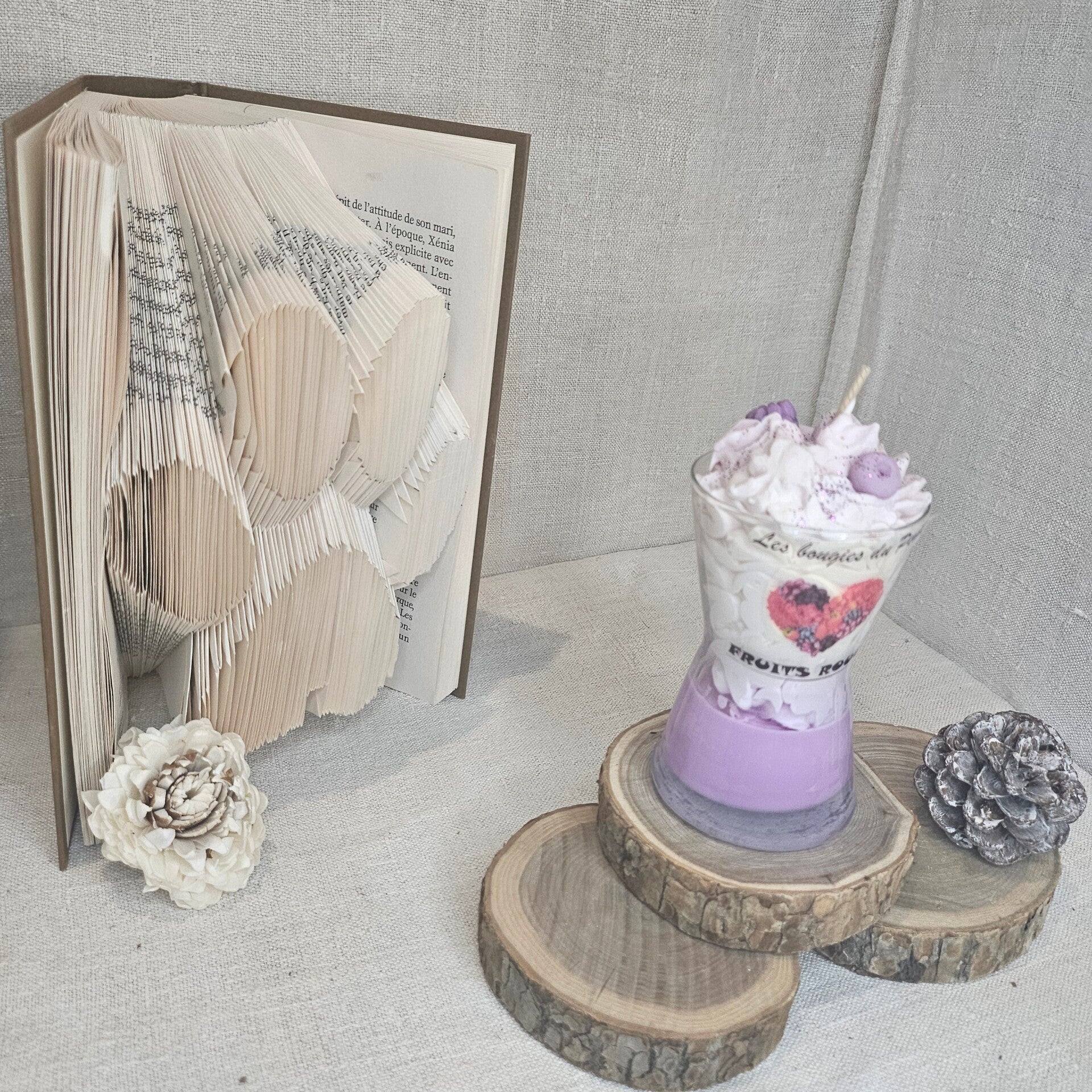Les bougies étant faites chacune à la main, elles peuvent présenter des légères différences de couleur, poids... c’est aussi ce qui rend chaque bougie unique !