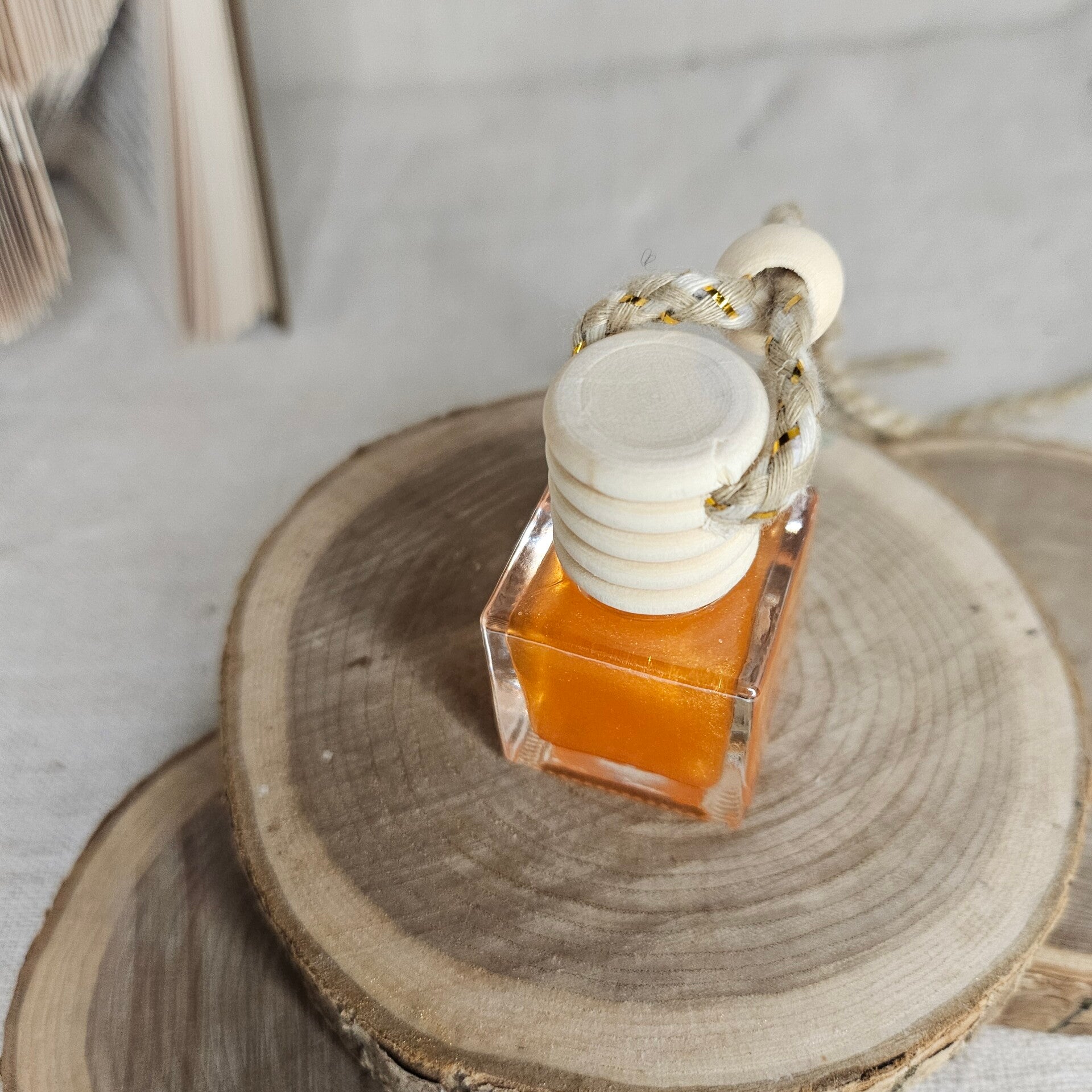 Conseils d'utilsation : Pour profiter plus longtemps du parfum, enlever le bouchon en plastique (sous celui en bois) et accrocher au rétroviseur intérieur. Régler la ficelle pour choisir l'intensité de diffusion du parfum, plus le diffuseur sera serré plus il sentira longtemps.