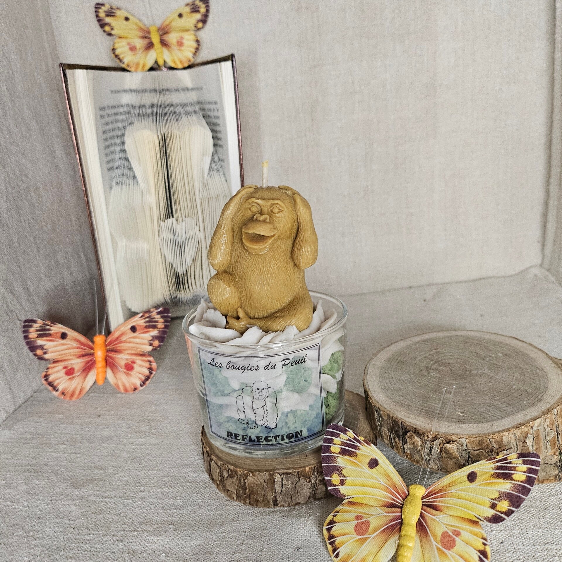 Les bougies étant faites chacune à la main, elles peuvent présenter des légères différences de couleur, poids... c’est aussi ce qui rend chaque bougie unique !